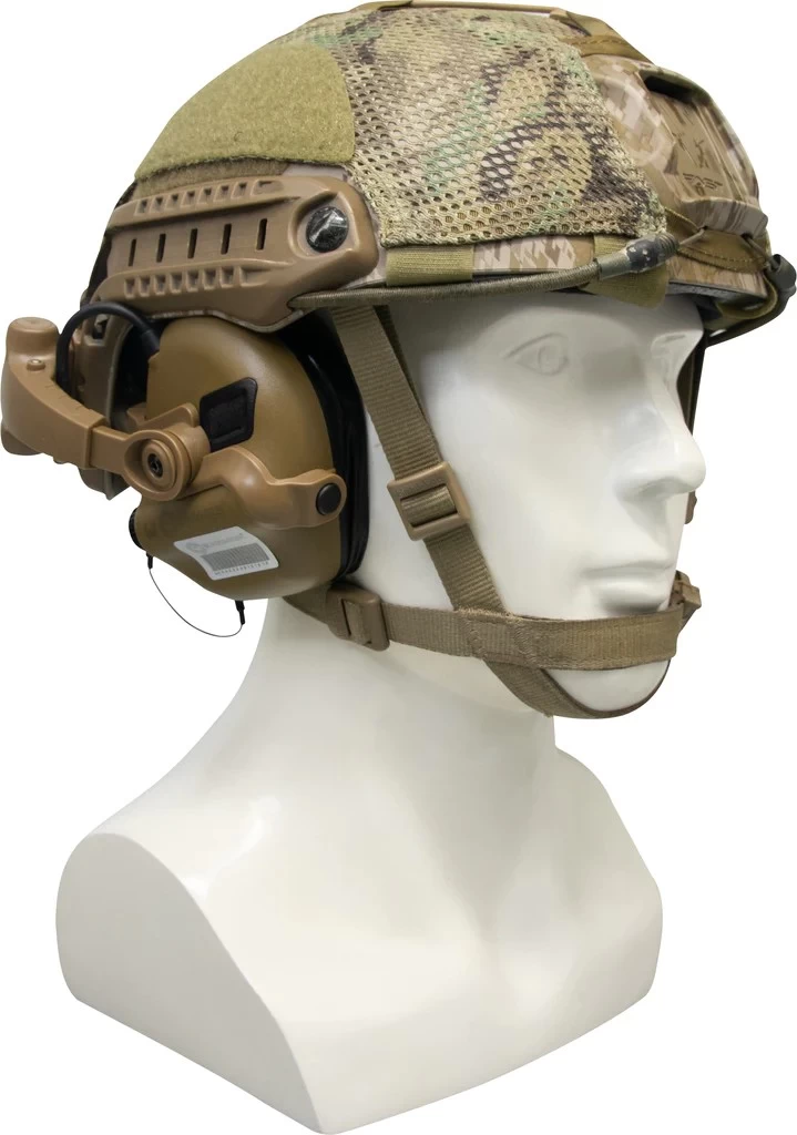 Zusammen mit dem Headset erhält der Anwender ein auswechselbares M16-Montageset, das speziell für ARC-Schienen an Helmen vorgesehen ist. Das um 360° drehbare Design verbessert den Komfort bei der Verwendung des Headsets zusammen mit dem Helm.