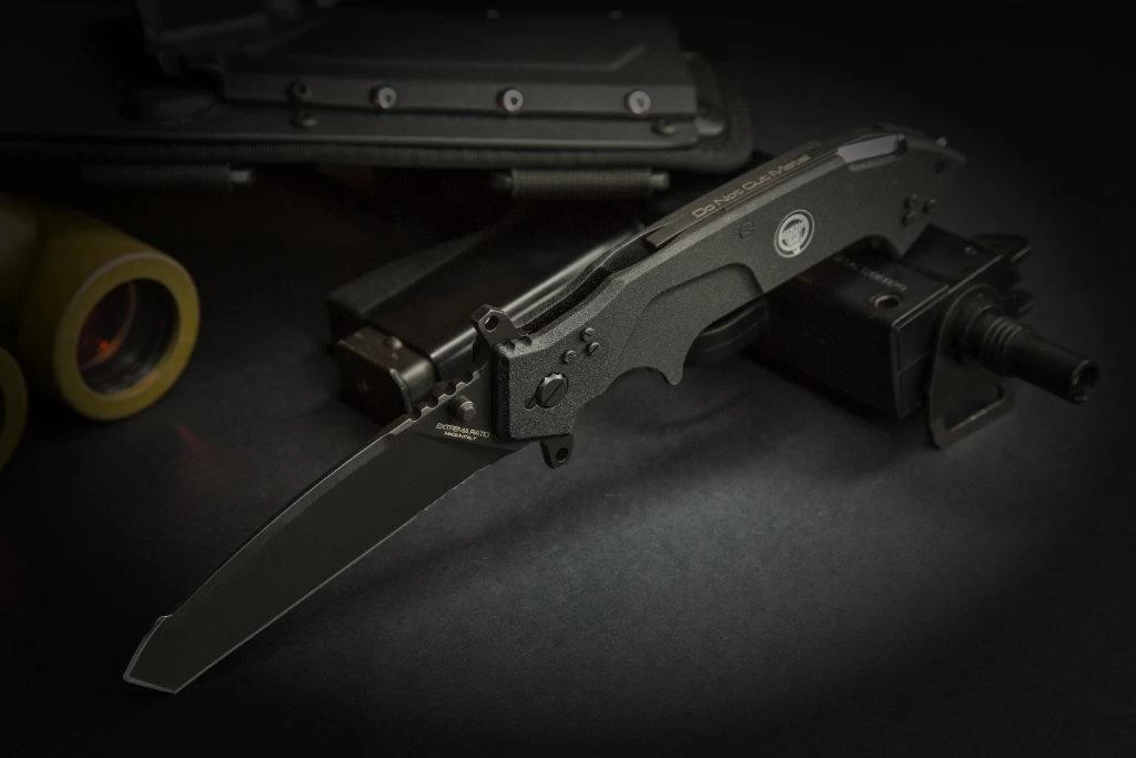 Dieses Klappmesser ist das Ergebnis unserer Zusammenarbeit mit GIGN, einer Spezialeinheit der französischen Gendarmerie. Die Klinge-Spitze entwickelt, um das Eindringen Leistung zu maximieren. Die Rückseite des Griffs verfügt über ein spezielles Werkzeug zum Schneiden von Kunststoff-Handschellen. Außerdem verfügt es über einen Glasbrecher, einen Clip mit drei Befestigungspositionen und ein Sicherheitsschloss. Die Scheide hat eine harte ABS-Struktur auf einem Cordura-Stoffkern und nimmt das Messer mit ausgefahrener Klinge auf; sie kann am Gürtel, Oberschenkel oder mit einer taktischen Weste mit MOLLE-System getragen werden.