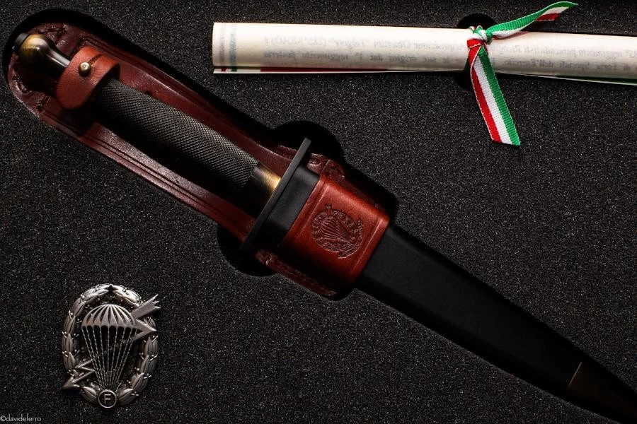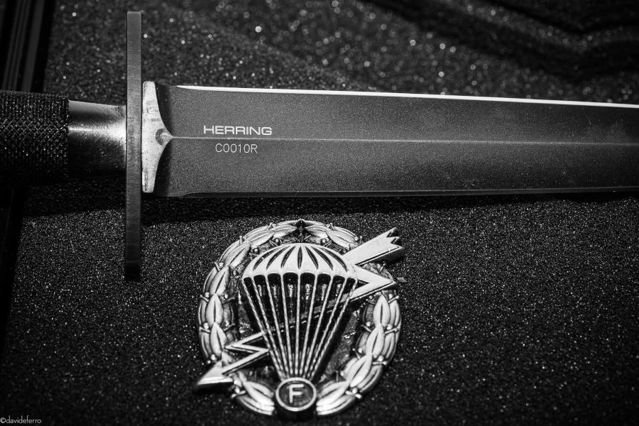 Der Herring-Dolch ist eines der von Liebhabern am meisten geliebten Militärmesser. Sein ursprünglicher Name ist Fairbairn Sykes oder Commando Dagger und war in der Ausrüstung der britischen Kommandos enthalten. Ein Dolch, der im Zweiten Weltkrieg dank der Heldentaten der jungen Soldaten des 1. Aufklärungsgeschwaders „Folgore“, die während der Operation Herring mit dieser Waffe ausgerüstet wurden, in die italienische Geschichte einging. Hinter ihm steckt ein heroisches Stück Geschichte, über das kaum gesprochen wird, obwohl diese jungen Männer dank ihrer Hingabe an die Sache und ihres Mutes eine wichtige Seite der italienischen Geschichte geschrieben haben. Extrema Ratio wollte diesem Dolch eine Hommage erweisen, indem es versuchte, den ursprünglichen Formen treu zu bleiben und gleichzeitig modernste Produktionstechniken zu verwenden. Die ganz besondere handgefertigte Verarbeitung des Griffs simuliert die Alterung von Messing und verleiht dem Dolch ein veraltetes Aussehen, das dem Original ähnelt. Der Dolch wurde in Zusammenarbeit mit der 185. RRAO entwickelt und als zeremonieller Gedenkdolch zum 20. Jahrestag der Gründung des Regiments und zum 75. Jahrestag der Herring-Mission übernommen. Beide Versionen (Herring und Herring NE) sind mit einem Polymergehäuse mit historischen F-Squadron-Insignien, einer Leder-/Kydexscheide mit Messingspitze und zwei Gedenkrollen ausgestattet. Lesen Sie den vollständigen Artikel zum Thema „ Der Dolch wurde in Zusammenarbeit mit der 185. RRAO entwickelt und als zeremonieller Gedenkdolch zum 20. Jahrestag der Gründung des Regiments und zum 75. Jahrestag der Herring-Mission übernommen. Beide Versionen (Herring und Herring NE) sind mit einem Polymergehäuse mit historischen F-Squadron-Insignien, einer Leder-/Kydexscheide mit Messingspitze und zwei Gedenkrollen ausgestattet. Lesen Sie den vollständigen Artikel zum Thema „ Der Dolch wurde in Zusammenarbeit mit der 185. RRAO entwickelt und als zeremonieller Gedenkdolch zum 20. Jahrestag der Gründung des Regiments und zum 75. Jahrestag der Herring-Mission übernommen.
