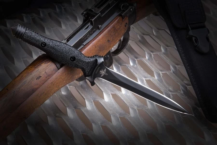 Das Suppressor Operativo ist ein Dolch der dem legendären Vorbild nachempfunden ist und zum 30. Jahrestag der italienischen Anti-Terror-GIS-Einheit Carabinieri (Gruppo d’Intervento Speciale) übergeben wurde. Es hat eine scharfe und schlanke Klinge mit einer glatten, doppelt symmetrischen Kante aus Bohler N690-Stahl mit einer mattschwarzen, nicht reflektierenden Oberfläche mit dem Logo historischer und zeitgenössischer Einheiten. Am unteren Ende der Klinge befindet sich ein Schutz zum Schutz der Hand. Der Griff besteht aus gerändeltem, gehärtetem Nylon und hat unten einen Glasbrecher. Kommt mit einer Nylonhülle.