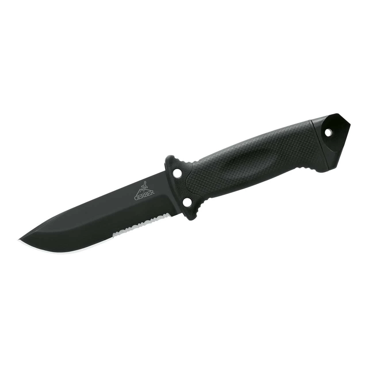 Wenn es drauf ankommt, ist das LMF II INFANTRY zur Stelle. Das Überlebensmesser aus dem Hause Gerber entstand in enger Kooperation mit dem Militär. Die starke Klinge aus rostfreiem, beschichtetem 420er-Stahl räumt mit ihrer kräftigenTeilsägezahnung alle Hindernisse aus dem Weg. Das schwarze Softgrip-Heft erweist sich als äußerst rutschfest. Am Ende des Griffes befindet sich ein massives Stahlelement zum Einschlagen von Scheiben. Das Messer wird in einer stabilen Kunststoff/Nylon-Scheide inklusive integriertem Messerschärfer geliefert. Mit dem beiliegenden Riemen lässt sich die Scheide so festziehen, dass sie eng am Bein anliegt.