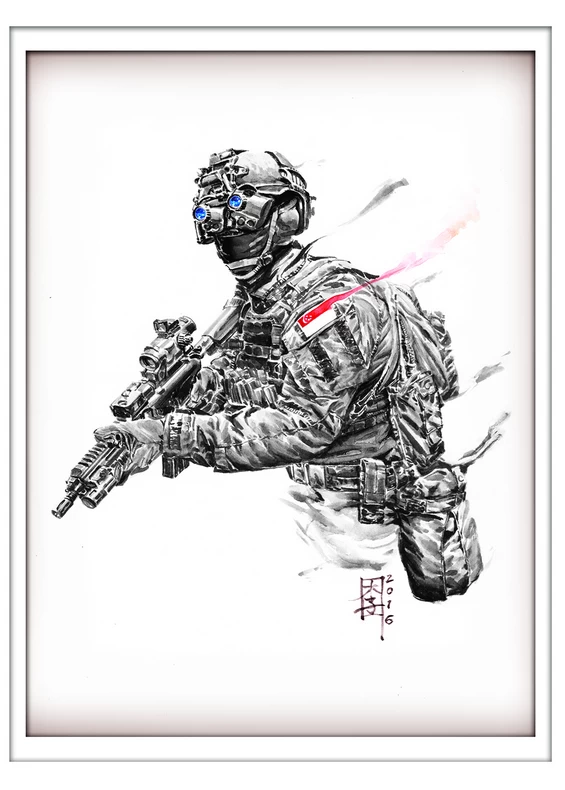 Kein Problem mit den bereits in einem schwarzen Kunststoffrahmen gefassten Bildern des Künstlers „Marc Lee“. Wer diese Bilder sieht, sieht nicht einfach nur den abgebildeten Soldaten, nein! Schon auf dem ersten Blick wird man in deren Lage versetzt, kann die Stimmung und sogar das Laue Lüftchen fühlen.