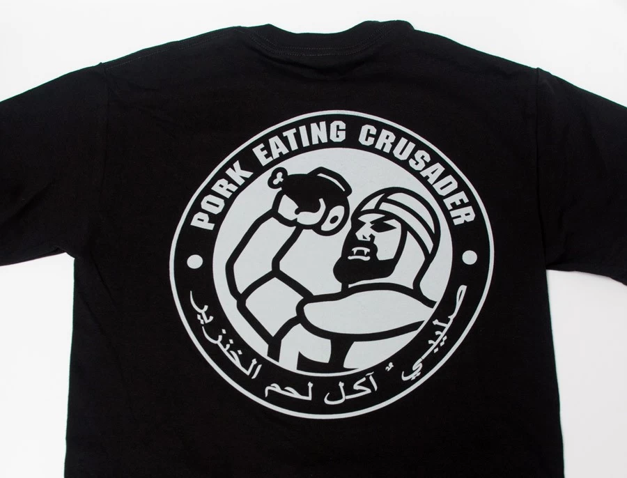 Basierend auf unserem Schweinefleisch essenden Kreuzritter-Design.