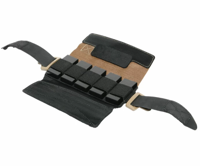 Die elastischen Taschen können sich dehnen, um (2) Gewichte oder (1) Gewicht und (1) Batterie (AA, AAA oder 123) aufzunehmen.