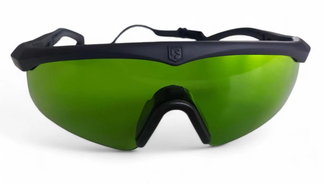 – Hinweis: Für Brillenträger ist optional ein Korrekturlinseneinsatz (RX-Einsatz), mit dem die Sehstärke korrigiert werden kann, erhältlich. Keine Laserlinse kann vor allen Arten von Lasergefahren schützen.