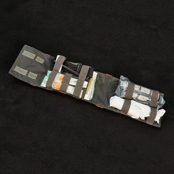 First Aid Kit mit Schnellzugriff-System. Zur Befestigung hinter der Kopfstütze des Fahrer- oder Beifahrersitzes. Das Panel mit individuell zu bestückenden Schlaufen kann mit einem Griff rechts oder links herausgezogen werden. Teil der TacVec-Serie.