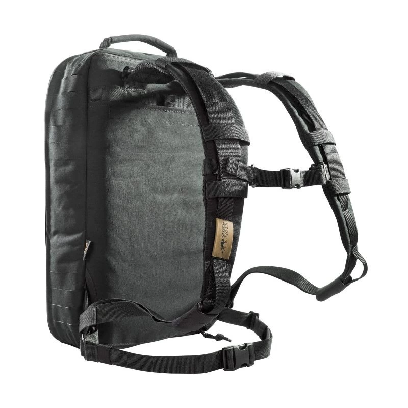 Größerer Medic-Rucksack mit intelligenter, übersichtlicher Innenaufteilung. Der TT Medic Assault Pack L MK II bietet nun die dritte Größe des bewährten Medic-Rucksacks von Tasmanian Tiger. Der Rucksack ist ca. 4 cm (ein Molle-Streifen) tiefer als die beiden kleineren Modelle. Das MOLLE-System auf der Front und an den Seiten ist in Laser Cut-Technik ausgeführt. Am Boden befindet sich eine Fixiermöglichkeit für eine Rettungsdecke. Die leichten, gepolsterten Schulterträger können abgenommen und in einer Tasche mit Klettverschluss am Rücken verstaut werden, eine Adaption des Rucksacks auf Plattenträger und Westen durch entsprechendes, mitgeliefertes Gurtband ist möglich. Verstaubare Tragegriffe dienen dem Schnelltransport im Notfall.