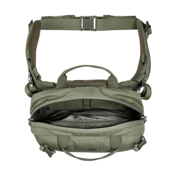 Die aufwendig konstruierte TT Modular Hip Bag 3 bietet verschiedene Möglichkeiten der Verwendung. Der abnehmbare Hüftgurt ist mit MOLLE in Lasercut-Version versehen und kann separat als Warrior Belt verwendet werden. Die Tasche ist auf der Rückseite mit einem MOLLE-Reverse-System versehen und kann somit auf allen MOLLE-Flächen befestigt werden. Ebenso ist sie mit anderen TT-Gürteln kombinierbar und besitzt eine Adapterlösung für das TT Harness Set (Artikel 7287). Die Tasche mit 5 Liter Volumen verfügt über zwei große Reißverschlussfächer, MOLLE in Lasercut-Ausführung auf der Front und an den Seiten und abnehmbare Kompressionsriemen an den Seiten und am Boden.