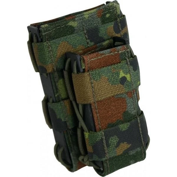Die Schnellziehtasche M4 Duo aus unserer Artemis Serie ist eine Kombination aus einer Magazintasche für eine Langwaffe mit einer vorgesetzten Magazin-asche für eine Kurzwaffe. So hat der Anwender die Möglichkeit schnell im Einsatz von der einen zur anderen Waffe zu wechseln, und das Magazin zu tauschen. Um einen sicheren Halt der vorgesetzten Pistolenschnellziehtasche zu gewährleisten, ist diese fest an die hintere Tasche angenäht. Wie bei einzelnen Schnellziehtaschen verfügen beide über ein Kydex®-Profil, das eine hohe Formstabilität und Ziehgeschwindigkeit ermöglicht. Kunststoff und textile Bauteile werden mit stabilen Gummikordeln verbunden und verhelfen den Taschen so zu einer einzigartigen Flexibilität.